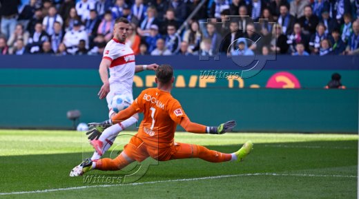 0:2 Tor, v.l. Torschuetze Ermedin Demirovic (Stuttgart), Torwart Timo Horn (Bochum)