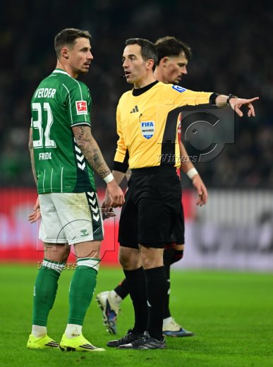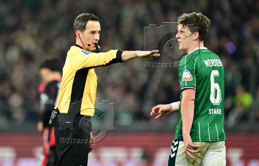 v.l. Senne Lynen, Marco Friedl, Jens Stage, Schiedsrichter Benjamin Brand, Justin Njinmah (Bremen)