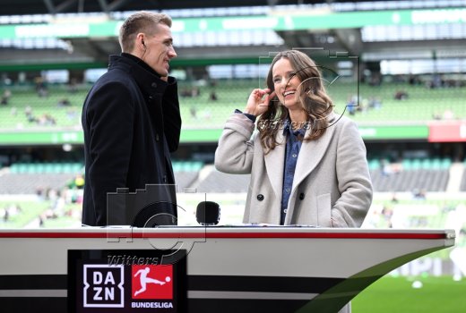 v.l. TV-Experte Nils Petersen, Moderatorin Christina Rann (DAZN)