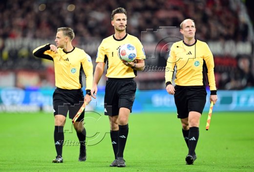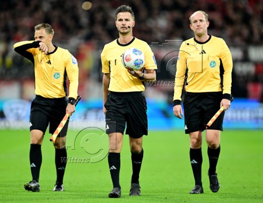 v.l. Schiedsrichterassistent Nikolai Kimmeyer, Schiedsrichter Daniel Schlager, Schiedsrichterassistent Tobias Fritsch