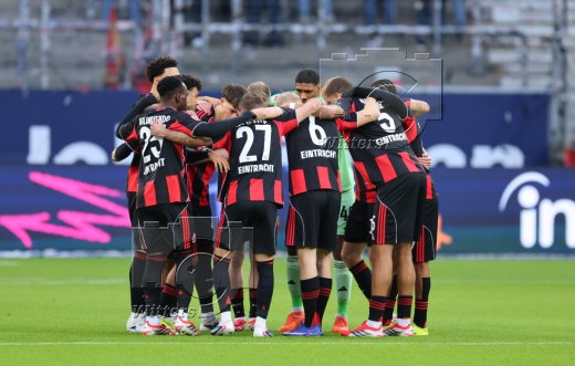 Schlussjubel, v.l. Torwart Michael Zetterer (Frankfurt), Jean-Matteo Bahoya, Aurele Amenda
