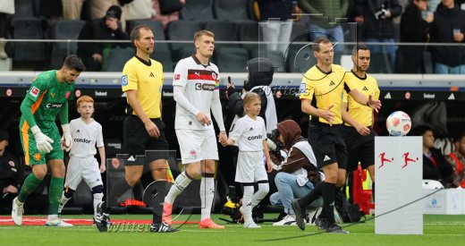 Auflaufen, Torwart Nikola Vasilj (St. Pauli), Eric Smith, Schiedsrichter Dr. Robin Braun