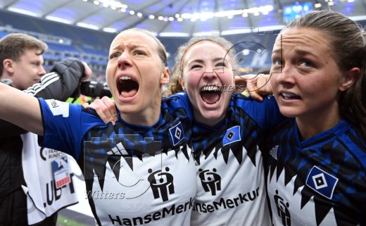Schlussjubel v.l. Torfrau Larissa Haidner, Gloria Sliskovic, Emilia Hirche, Camilla Linberg, Victoria Schulz, Maria Mikolajova, Sophie Profe, Jaqueline Doenges, Paulina Bartz (HSV)