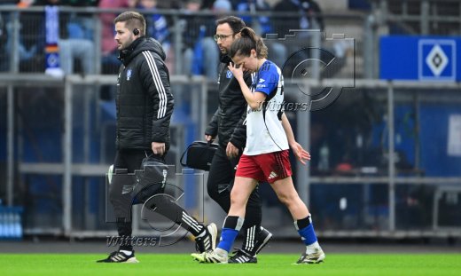 Verletzung v.l. Physiotherapeut Justus Simon, Mannschaftsarzt Prof. Dr. Dimitris Dalos, Pauline Machtens (HSV)