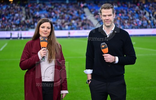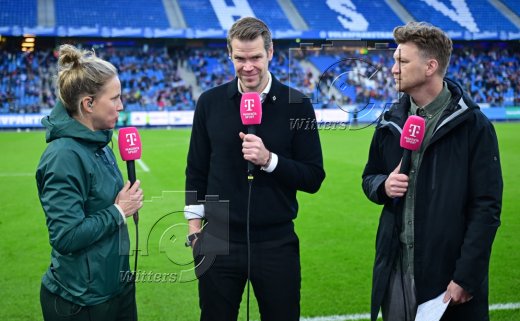 v.l. TV-Expertin Tabea Kemme, Dr. Eric Huwer (Vorstand Finanzen, HSV), Moderator Simon Koepfer (Magenta)
