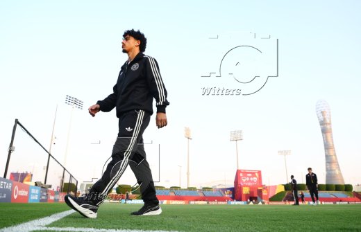 Abdulbaki Al Khalaf (Deutschland) im Stadion der ASPIRE Academy, ASPIRE Tower (im Hintergrund)