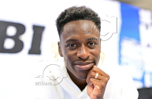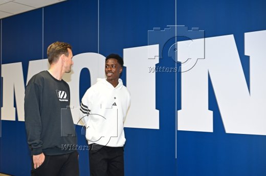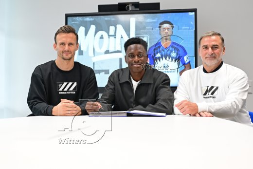 v.l. Claus Costa (Direktor Profifussball), Albert Sambi Lokonga