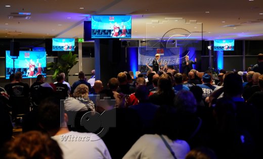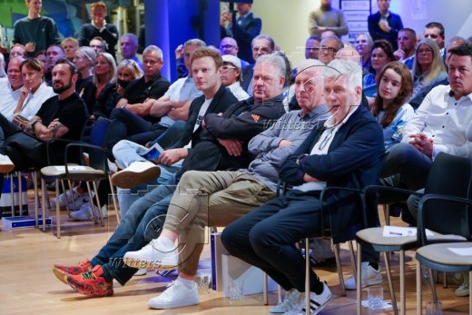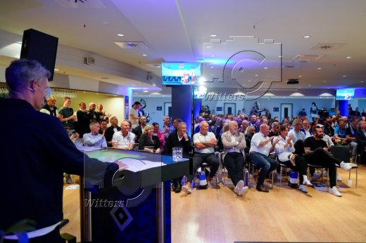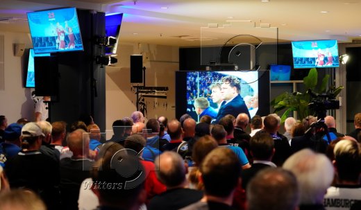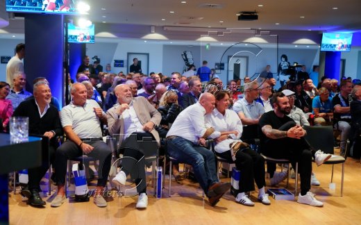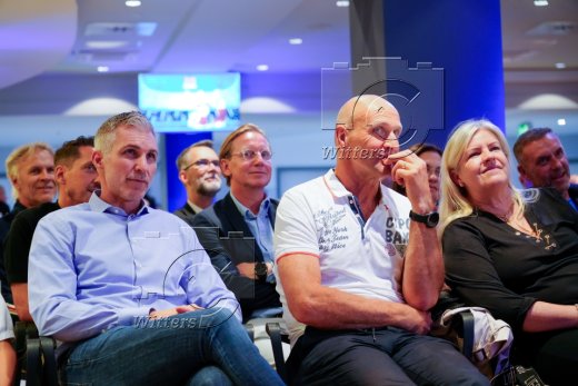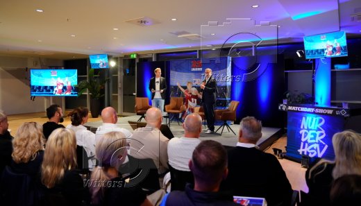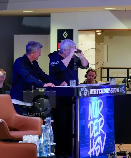 v.l. Stadionsprecher Christian ''Stuebi'' Stuebinger (HSV), Stefan Kuntz (Vorstand Sport, HSV)