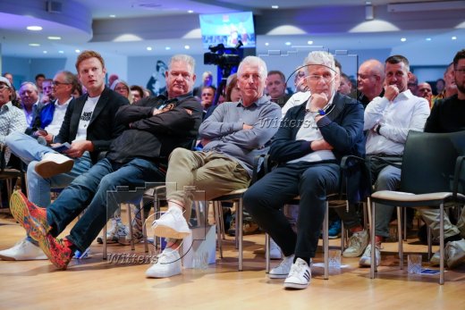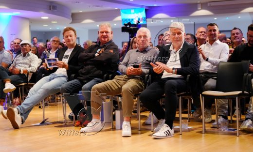 v.l. Stadionsprecher Christian ''Stuebi'' Stuebinger (HSV), Frank Pagelsdorf, Armin Reutershahn, Juergen Ahlert