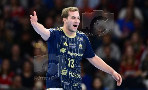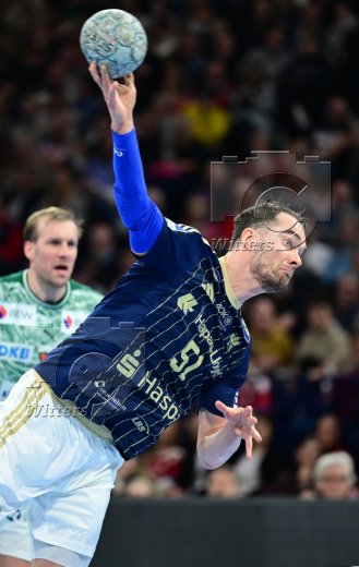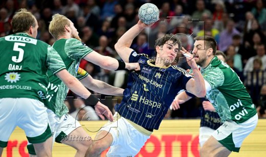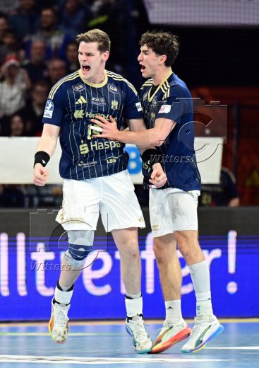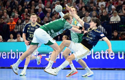v.l. Mathias Gidsel (Fuechse), Moritz Sauter
