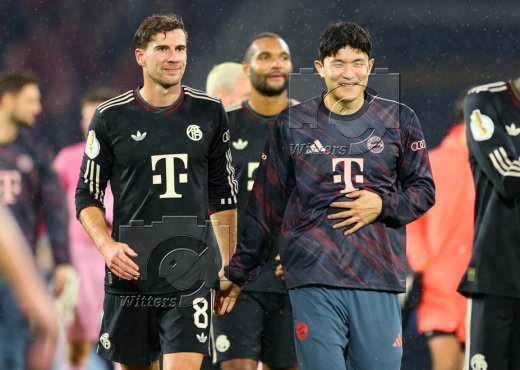 Schlussjubel, v.l. Leon Goretzka, Min-Jae Kim (Bayern)