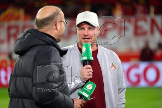 v.l. Moderator Patrick Wasserziehr (Sky), Trainer Lukas Kwasniok (Koeln)