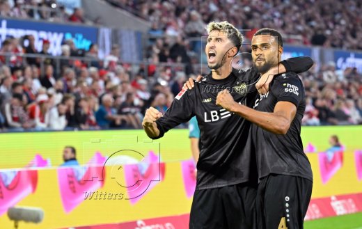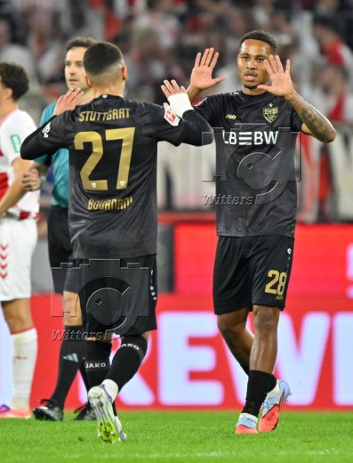 Schlussjubel v.l. Chris Fuehrich, Nikolas Nartey (Stuttgart)