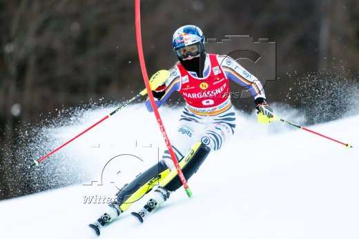 Camille Rast (Schweiz) mit Trauerflor in Gedenken an die Opfer der Brandkatastrophe von Crans Montana