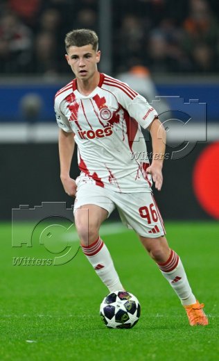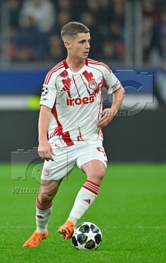 v.l. Torwart Kostas Tzolakis (Piraeus), Patrik Schick (Leverkusen)