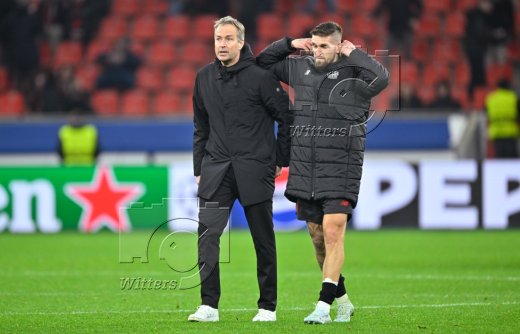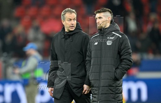 v.l. Trainer Kasper Hjulmand (Leverkusen), Robert Andrich
