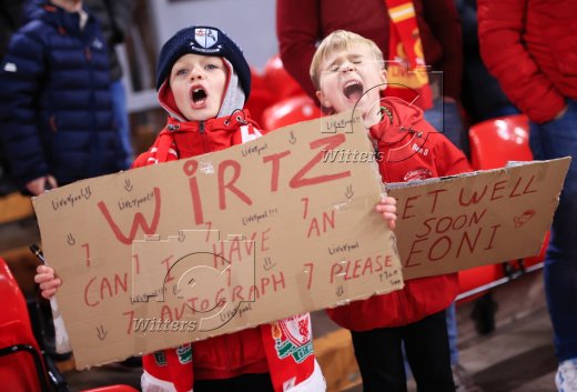 Fans Liverpool mit Autogrammwunsch an Florian Wirtz (Liverpool)