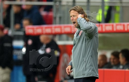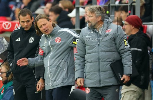 v.l. Vierter Offizieller Robin Braun, Trainer Bo Henriksen (Mainz), Co-Trainer Michael Silberbauer