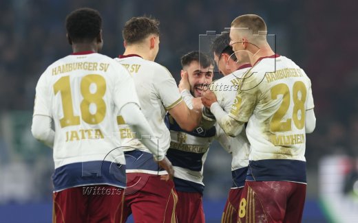 1:1 Tor, Jubel, v.l. Bakery Jatta, Nicolai Remberg, Torschuetze Fabio Vieira, Nicolas Capaldo, Miro Muheim (HSV)