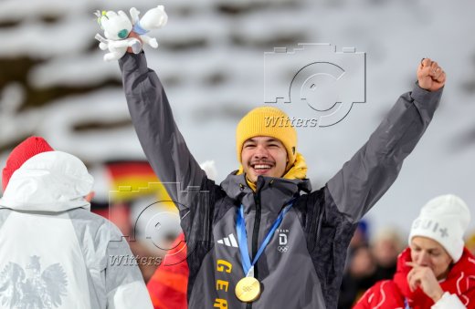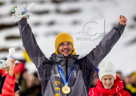 Predazzo, 09.02.2026, Olympische Winterspiele Milano Cortina 2026 (Mailand und Cortina d'Ampezzo / Italien), Skispringen, Herren, NormalschanzeGermany Only