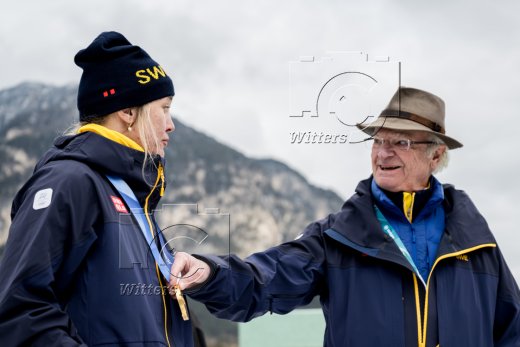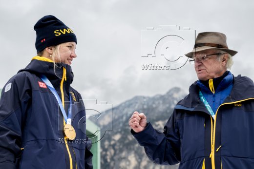 v.l. Olympiasiegerin Linn Svahn (Schweden), Koenig Carl XVI Gustaf von Schweden