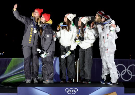 v.l. Magdalena Matschina, Dajana Eitberger (Deutschland, Silber), Olympiasiegerinnen Andrea Voetter, Marion Oberhofer (Italien, Gold), Selina Egle, Lara Michaela Kipp (Oesterreich, Bronze)