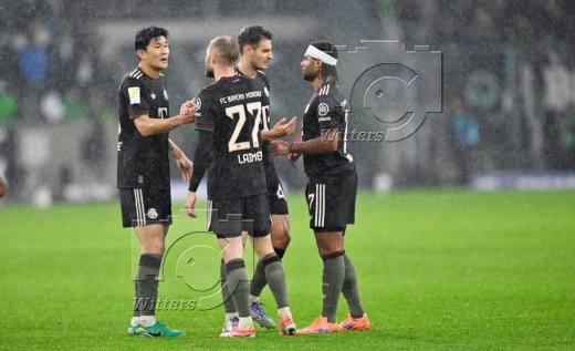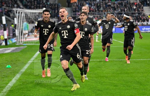 Schlussjubel v.l. Konrad Laimer, Joshua Kimmich, Min-Jae Kim, Torwart Manuel Neuer (Bayern), Josip Stanisic, Harry Kane, Aleksandar Pavlovic, Serge Gnabry