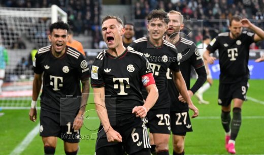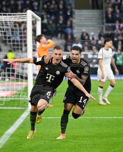 0:1 Tor, Jubel, v.l. Luis Diaz, Torschuetze Joshua Kimmich, Tom Bischof, Konrad Laimer (Bayern)