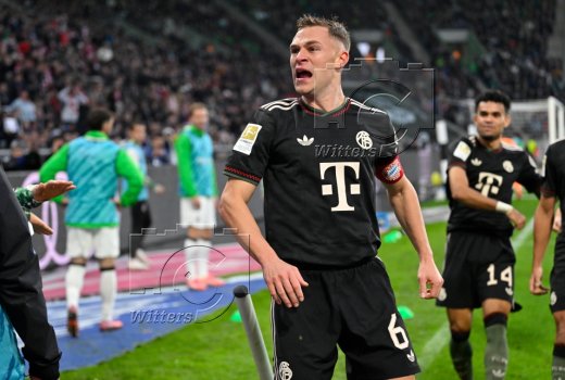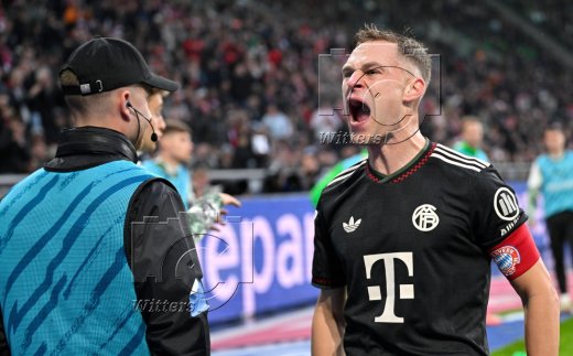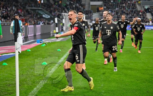 0:1 Tor, Jubel, Torschuetze Joshua Kimmich (Bayern) haut die Eckfahne weg
