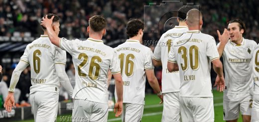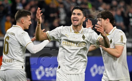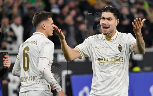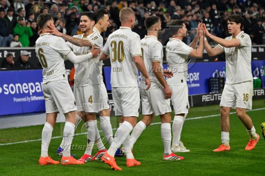 1:0 Tor, Jubel, v.l. Torschuetze Yannick Engelhardt, Lukas Ullrich, Philipp Sander, Haris Tabakovic, Nico Elvedi, Rocco Reitz (Gladbach)