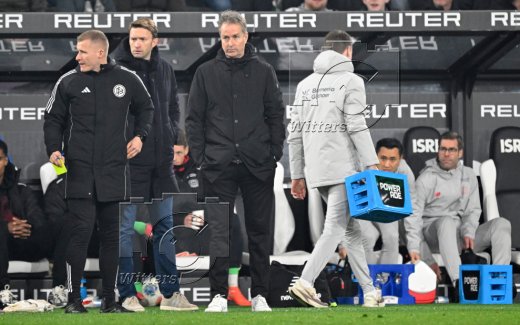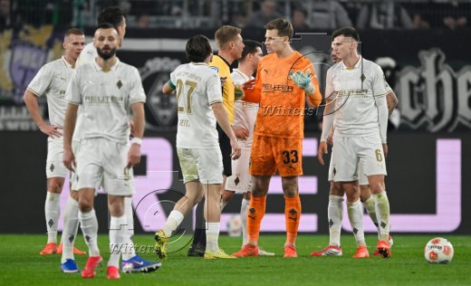 v.l. Rocco Reitz, Schiedsrichter Christian Dingert, Torwart Moritz Nicolas (Gladbach), Yannick Engelhardt
