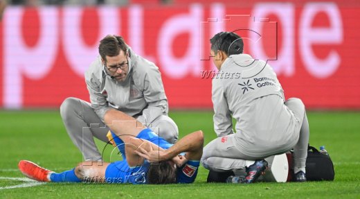 v.l Schiedsrichter Christian Dingert, Verletzung Jonas Hofmann (Leverkusen), Loic Bade