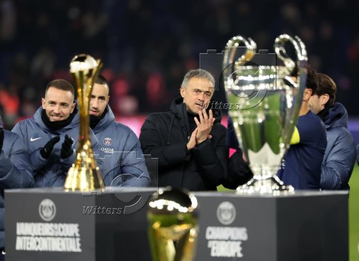 Trainer Luis Enrique (PSG) mit Interkontinental Cup und Champions-League-Pokal