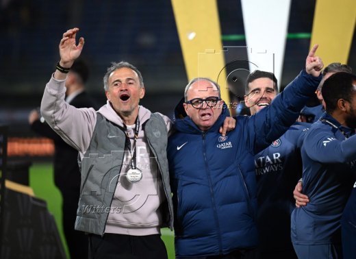 PSG Supercup-Sieger 2025, v.l. Trainer Luis Enrique, Berater Luis Campos