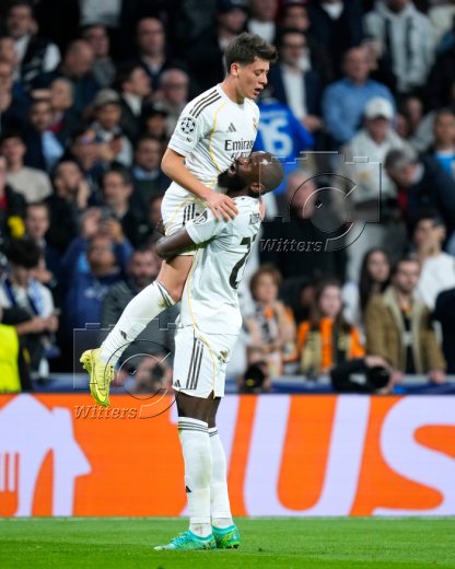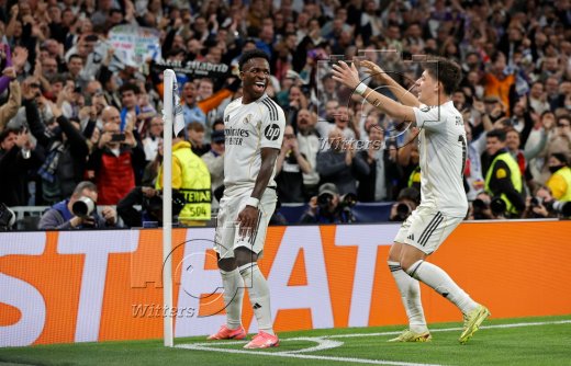 2:1 Tor, Jubel, v.l. Torschuetze Vinicius Junior, Arda Gueler (Real)
