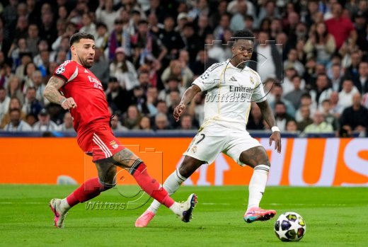 2:1 Tor, v.l. Nicolas Otamendi, Torschuetze Vinicius Junior (Real), Torwart Anatoliy Trubin (Benfica)
