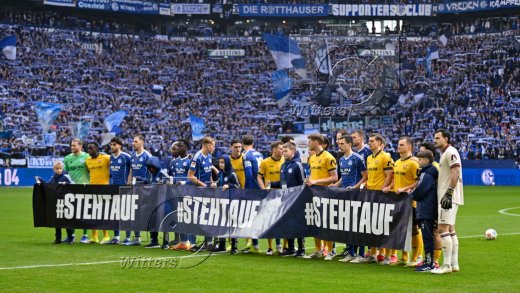 Team Schalke und Team Dresden mit Transparent #STEHTAUF gegen Diskriminierung und Ausgrenzung