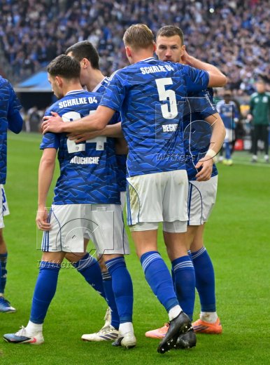 1:0 Tor, Jubel, v.l. Adil Aouchiche, Timo Becker, Torschuetze Edin Dzeko (Schalke)