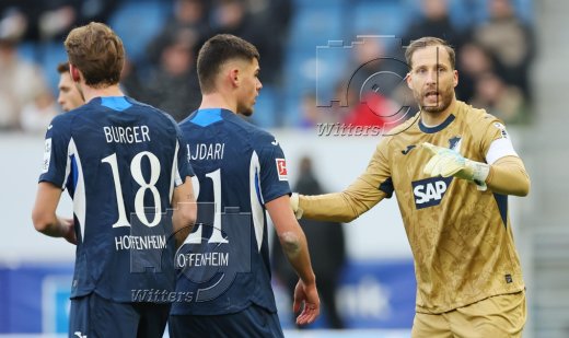 v.l. Wouter Burger, Albian Hajdari, Torwart Oliver Baumann (Hoffenheim)