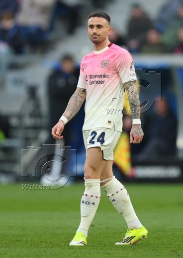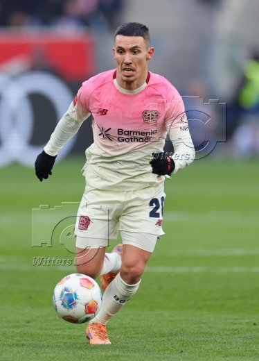 v.l. Torwart Oliver Baumann (Hoffenheim), Alejandro Grimaldo (Leverkusen)