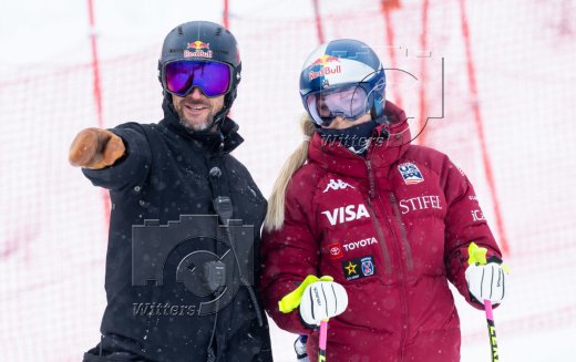 v.l. Trainer Aksel Lund Svindal (Norwegen), Lindsey Vonn (USA)