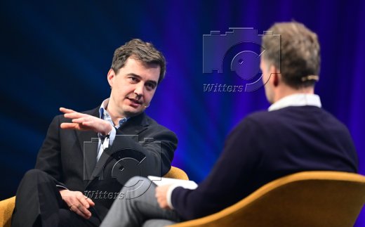 v.l. Dr. Steffen Merkel (Geschaeftsfuehrer DFL Deutsche Fussball Liga GmbH), Moderator Marco Klewenhagen (Geschaftsfuehrender Gesellschafter SPOBIS GmbH)