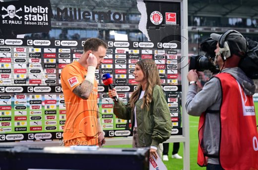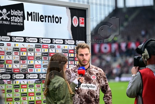 v.l. Moderatorin Mara Mones (Sky), Lars Ritzka (St. Pauli)
