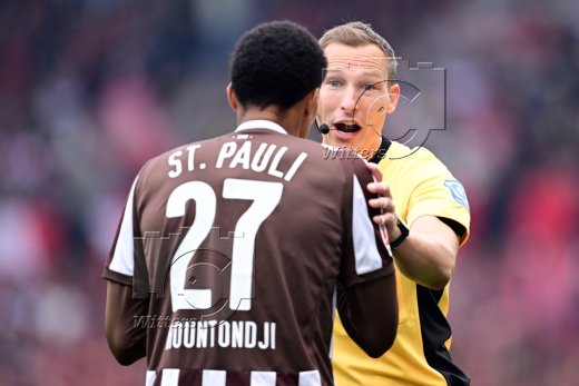 v.l. Andreas Hountondji (St. Pauli), Schiedsrichter Martin Petersen