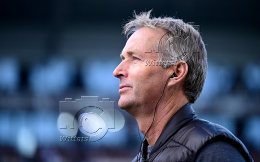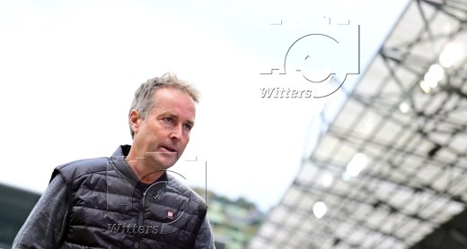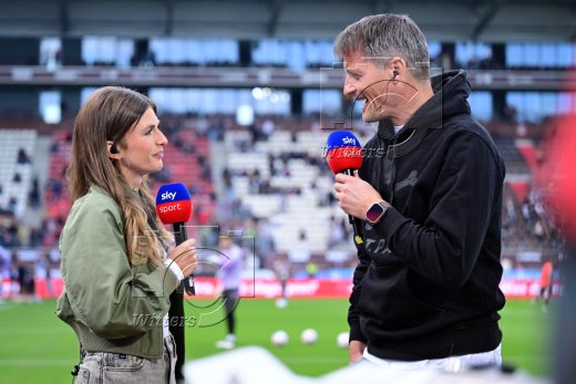v.l. Moderatorin Mara Mones (Sky), Trainer Alexander Blessin (St. Pauli)