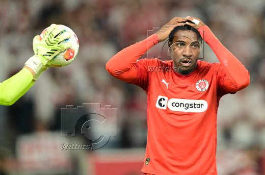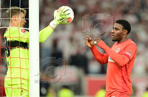 v.l. Torwart Alexander Nuebel (Stuttgart), Oladapo Afolayan (St. Pauli)