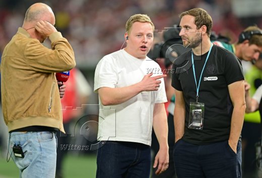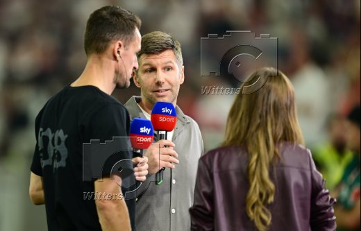 v.l. Christian Gentner (Leiter Lizenbereich, Stuttgart), Thomas Hitzlsperger (Mitglied des Aufsichtsrats, Hellas Verona, Italien), Moderatorin Mara Mones (Sky)