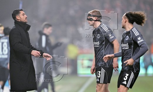 v.l. Trainer Albert Riera (Frankfurt), Rasmus Kristensen