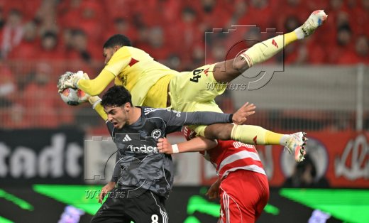 v.l. Torwart Kaua Santos (Frankfurt), Fares Chaibi, Leopold Querfeld (Union)