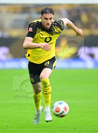 Pass zum 1:0 Tor v.l. Robin Fellhauer, Maximilian Beier (Dortmund)